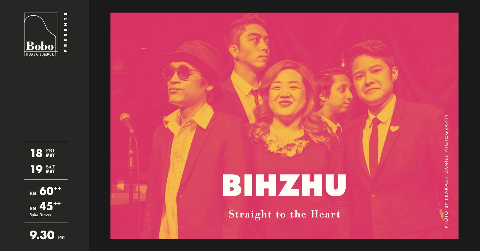 Celebrating the joys and sorrows of life with a no-holds-barred attitude, singer-songwriter Bihzhu returns to Bobo KL with her arsenal of original compositions and eclectic covers that will speak to your soul, resonate with your heart and uplift your spirits.
