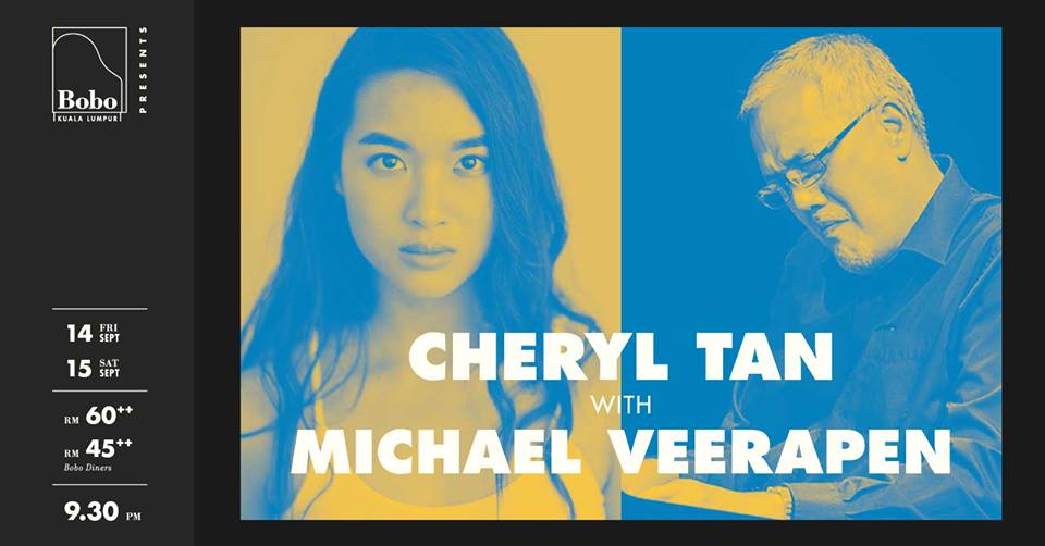 Jazz maestro Michael Veerapen returns to Bobo with Cheryl Tan Yin Yi—Malaysian musical theatre ingénue making waves in Singaporean productions such as Forbidden City and Dick Lee’s Singapopera. Featuring a mixed program of songs from the stage and beyond, come bask in the company of one of Malaysia’s best loved maestros and our very own Cheryl Tan.