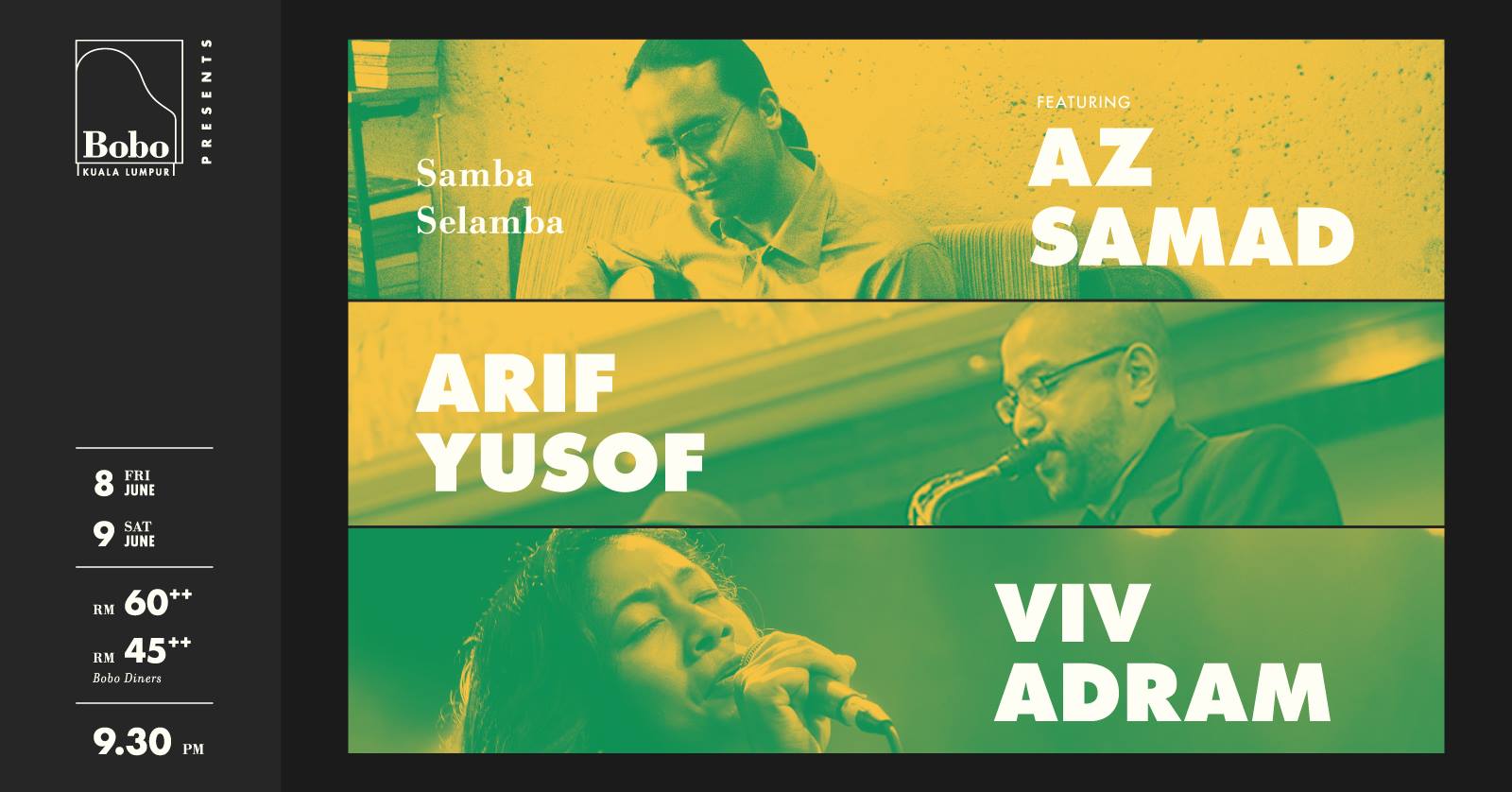 When chill-out Brazilian music meets a lepak Malaysian vibe, Samba Selamba is born! Help yourself to Antonio Carlos Jobim with a limau-ais twist and how about some P. Ramlee with a dash of Brazilian salsa?