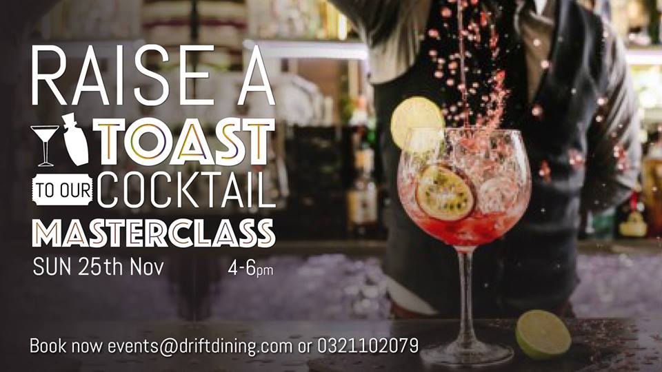 To find out more and sign up, contact us at events@driftdining.com, visit our site at www.driftdining.com/cocktail-class or send us a FB message.