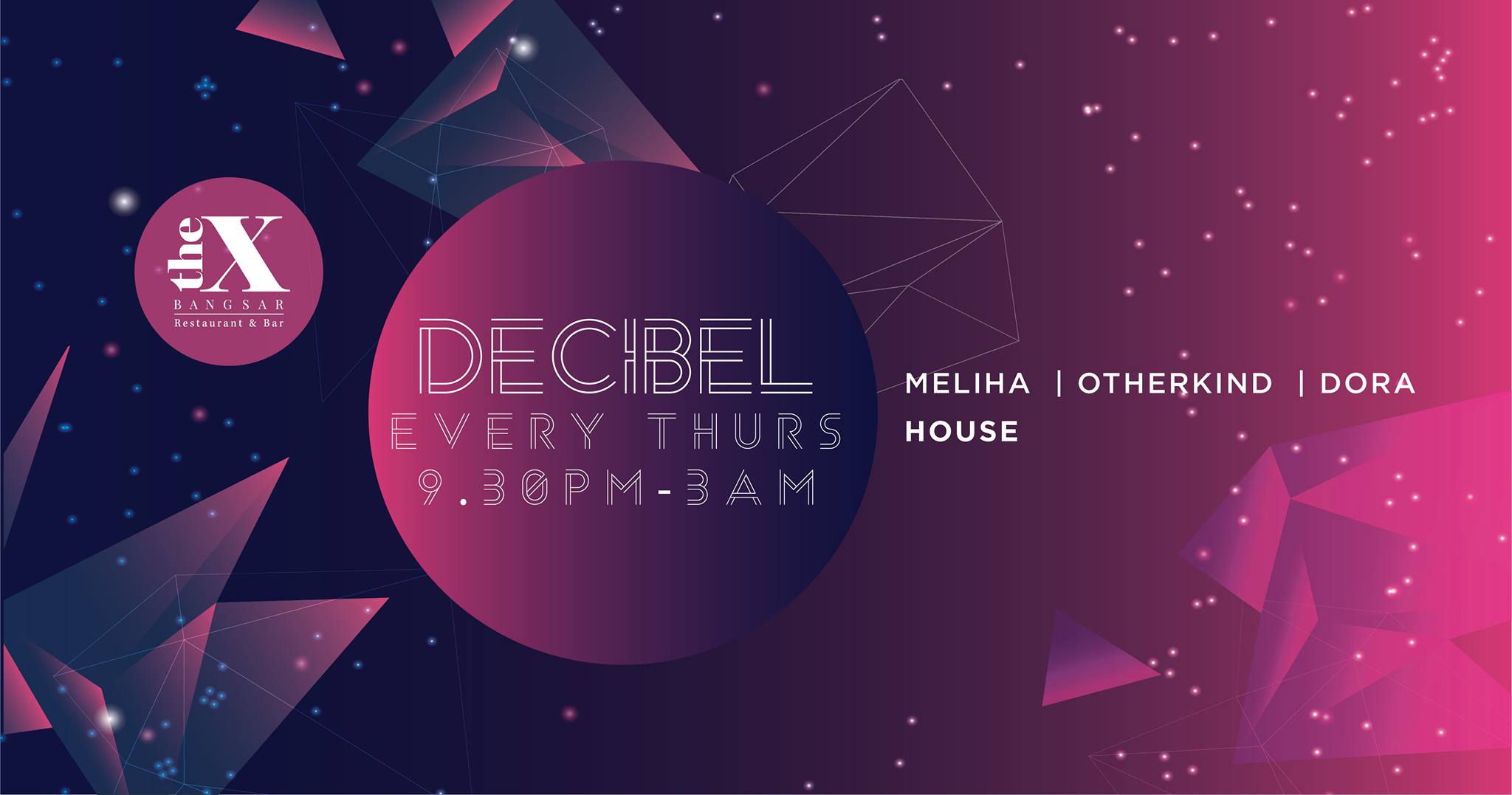 Come join us for DECIBEL Thursday at The X Bangsar! For the ladies, buy any wine, beer or house pouring glass and enjoy our Buy 3 Free 1 promo. There's also 30% off food and bottles all night (excluding promo items).
