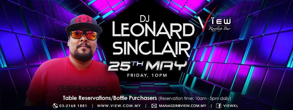 DJ Leonard Sinclair will be spinning at View Rooftop Bar on 25th May 2018!