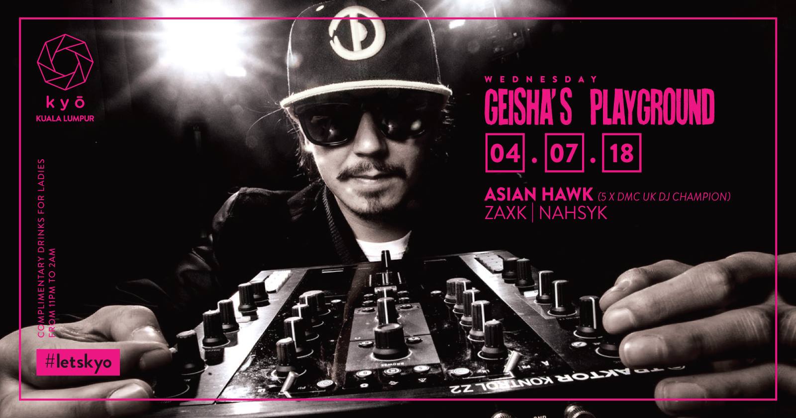Ladies : Complimentary Entry Complimentary Vodka Sprite/ Gin & Tonic 11pm till 2am Gentlemen: Admission (incl 1 drink) RM40 before 1am RM60 after