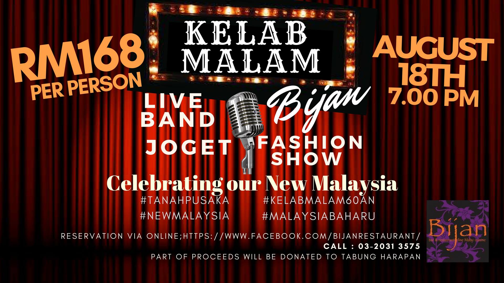 A portion of proceeds will be donated to Tabung Harapan.