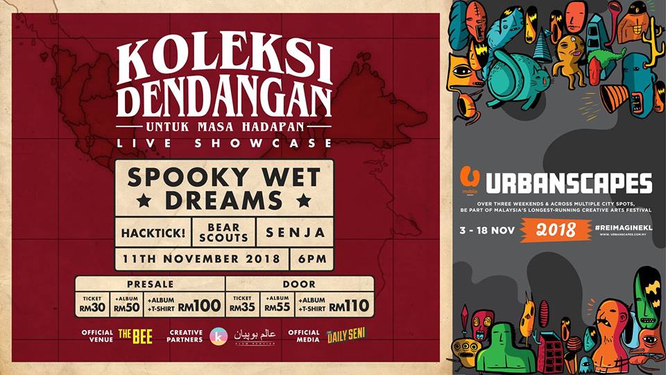 After the success of ‘Ipoh Girls’ and ‘Ini Sekolah, Bukan Kilang!’, Indie Alternative Rock band Spooky Wet Dreams will be releasing their first ever album entitled 'Koleksi Dendangan Untuk Masa Hadapan', in spectacular fashion with a concept launch/showcase event that will be held at The Bee, Publika as part of this year’s Urbanscapes Festival, together with exciting trio Senja, 80s pop outfit Bear Scouts, and 5-piece pop punk group all the way from Wilayah Tong Sampah, Hacktick!