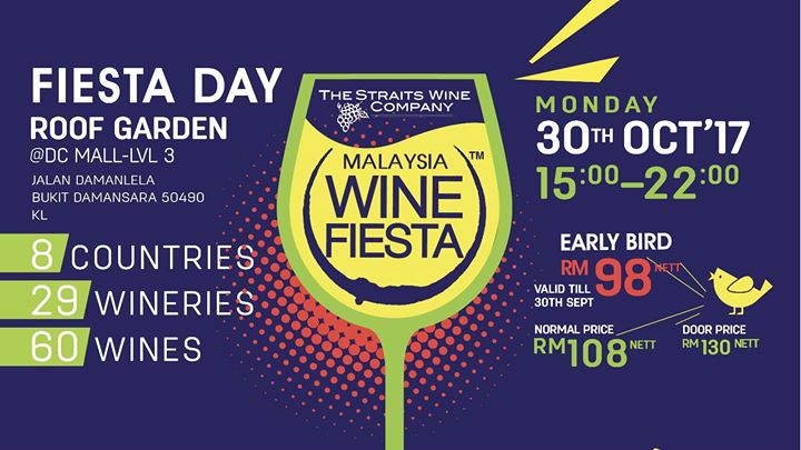 Ticket available at www.straitswine.com.my or https://www.eventbrite.com/e/malaysia-wine-fiesta-fiesta-day-tickets-37798343864?aff=es2