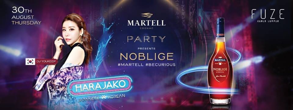 Get ready for Martell Party! Martell Noblige is coming to Malaysia - party with us in a special HARAJAKO style and concept with Korean deejay DJ YOUKEEP! Ladies you get to enter for free before midnight. Stay tuned for more deets on special bottle deals! #Martell #Becurious #Noblige