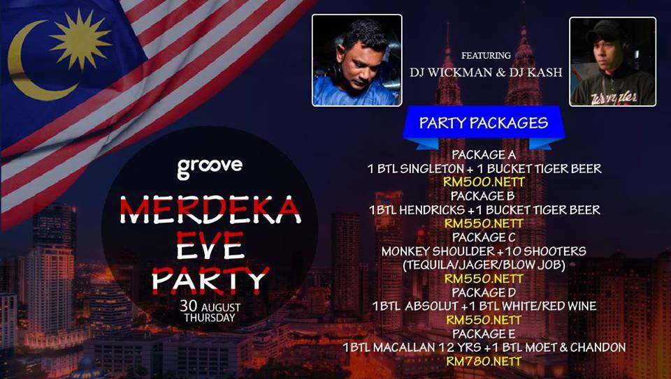 Come join us and count down to Merdeka with some amazing new party packages for everyone. We will kick off at 8pm on Thursday 30/8 and stay open till late. We also want to welcome DJ Wickman from Social who will play all your favourite hits from 70s-90s along with DJ Kash ! We also have some amazing drink specials so hurry and make your reservations at +60 12 4448154.