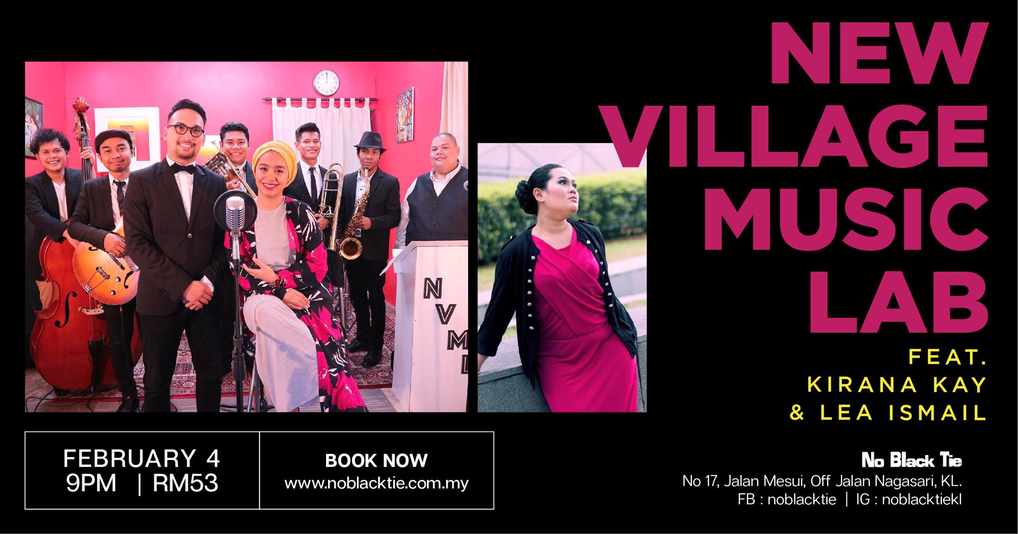 Formed in 2016 by pianist Tengku Indra, New Village Music Lab takes inspiration from Postmodern Jukebox to bring their own twist to evergreen songs with the aim to boost people’s interest in classic and modern jazz. Initially starting as a three-piece band, Tengku Indra got the idea to pull in more members in July 2016. NVML collaborates with local artists as a way of creating a platform for new faces to showcase their talent.
