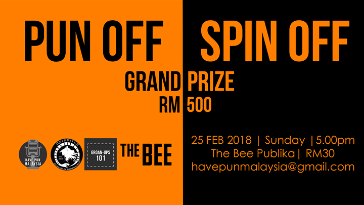 Have you ever wondered if Have Pun Malaysia Pun Competition would make a Pun OFF on its own? Look no further, PUN OFF SPIN OFF that requires improvised quips on a randomly selected topic is coming to The Bee Publika