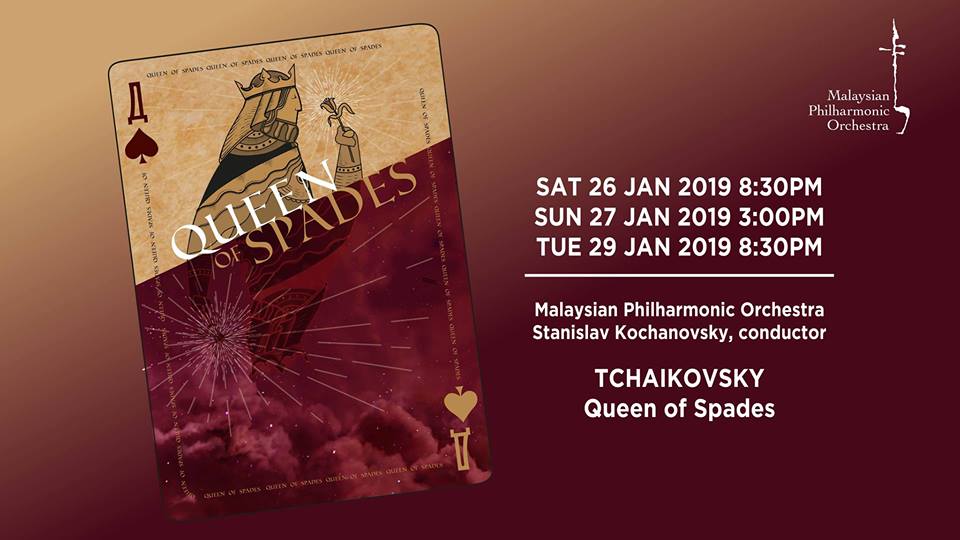 To purchase tickets, visit our Box Office at Ground Floor, Tower 2, PETRONAS Twin Towers, KLCC or call 603 2331 7007, you may also purchase online at http://mpo.com.my/04-queen-of-spades/