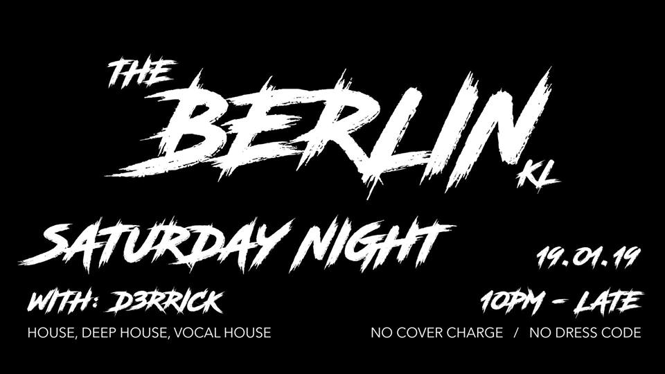 Join us this Saturday at The Berlin KL with #DJ D3rrick from 10pm till late with the latest House, Deep House & Vocal House tracks!