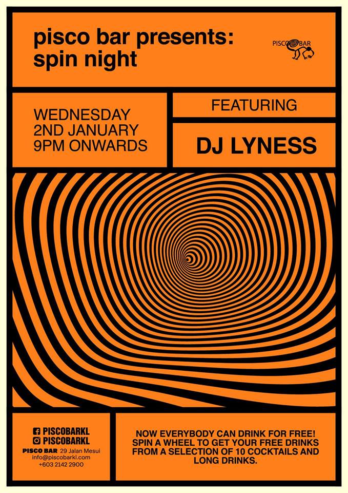 Have yourself a good Spin night featuring DJs Lyness. He takes you on a musical rollercoaster through 3 decades of dancefloor anthems. Join us and enjoy the rhythm :)
