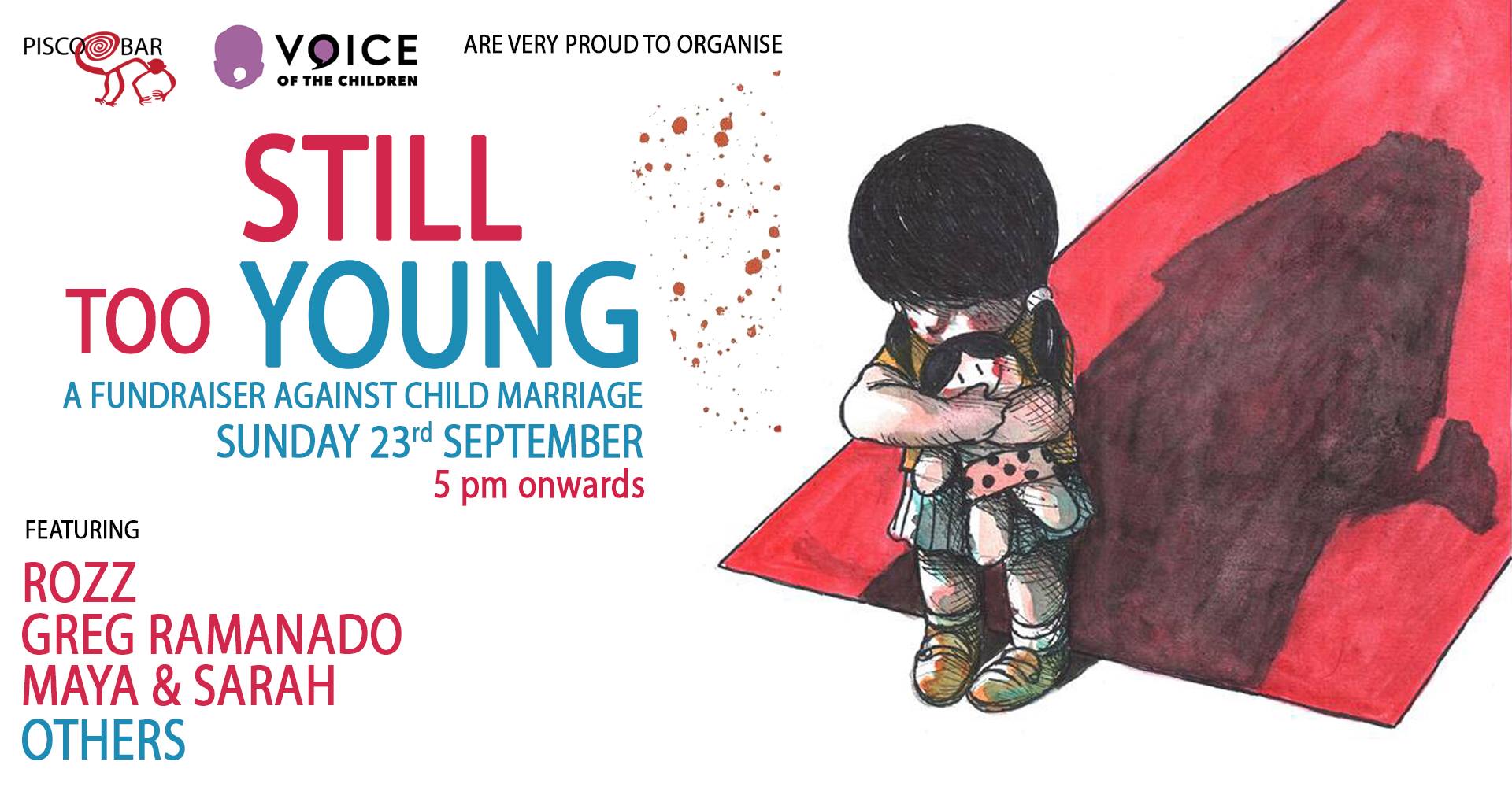 On September 23rd 2018, VoC and Pisco Bar will be hosting a fundraiser at Pisco, Kuala Lumpur to spark conversations, create awareness and raise funds in a fun manner for our cause against child marriage. At this stage, the event also includes performances by our very talented local musicians and raffle rounds.