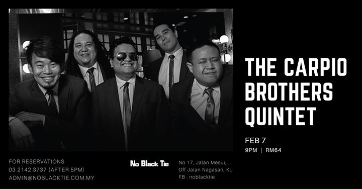 The Carpio Brothers Quintet featuring Bernard Carpio on Saxophone & Chris Carpio on Piano is an action packed ensemble not to be missed. They have performed in jazz clubs, concert halls and high profile events around Asia including Brown Sugar (Taipei), Legacy (Taichung), Soul Bar & Smalls Bangkok), Publika Jazz Festival 2017 and Taste of Hong Kong to name a few.