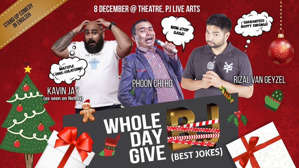 End 2018 with a BANG! Let Kavin Jay, Phoon Chi Ho and Rizal van Geyzel satisfy you with a whole evening of Best Jokes and Happy Endings. This trio of naughty Santas will tickle your tummy with some jingle bells, non-stop gags and multiple E-Joke-Culations. Watch out for the hidden mistletoe around the theatre!