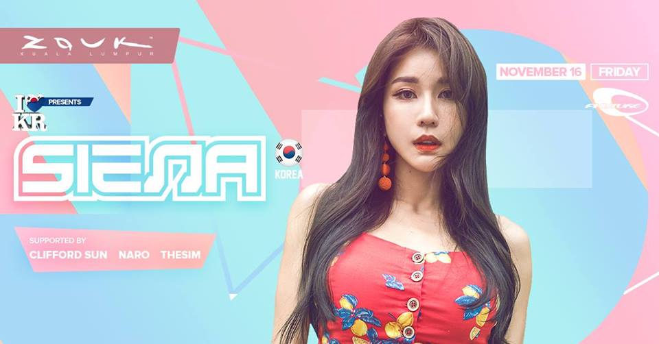 I<3KR pres.DJ SIENA an ambassador model for Road FC and ONE Championship, earning her fame virally around the world. Now ready to take on the Malaysian scene with her DJ-ing skills, get ready for DJ SIENA debuting at Zouk KL this November 16, 2018!